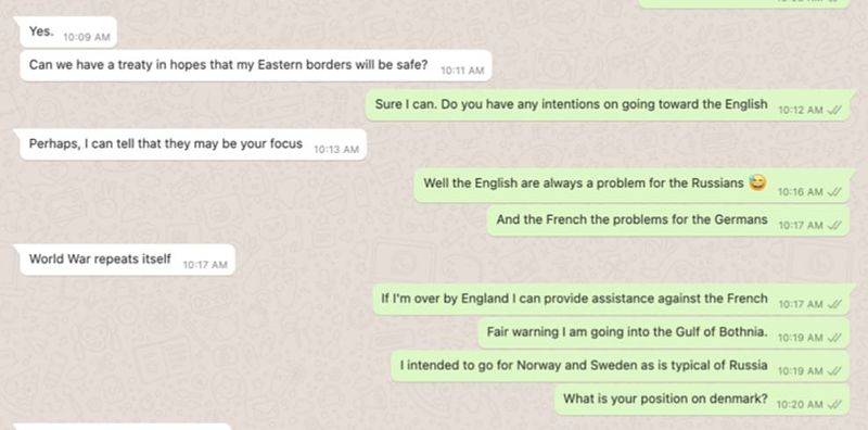 As the final chapter of our Diplomacy wargaming journey comes to a close, it's essential to reflect not just on the outcomes but also on the lessons learned and the growth experienced throughout the process. Each game has been a microcosm of the complexities that potentially reflect real-world diplomacy, negotiation, and strategy. (The games) revealed not just the strategic depth of Diplomacy but also the importance of trust, communication, and adaptability in achieving one's objectives. Throughout the games, each player brought their unique approach to the table, from assertive manoeuvres, to focused strategy, cooperation and peacekeeping. However, amidst the triumphs and setbacks, one overarching lesson emerged—the value of diplomacy in both conflict resolution and relationship-building. Despite the competitive nature Diplomacy, there were moments of collaboration and negotiation that underscored the power of communication in achieving mutual goals and averting conflict. Looking ahead, the insights gained from our Diplomacy wargaming experience could go beyond the confines of the digital game board and offer valuable lessons for navigating real-world scenarios. Whether in business negotiations, international diplomacy, or everyday interactions, the principles of strategy, communication, and trust remain paramount. In the end, it's not just about winning the game--it's about the journey of growth, discovery, and camaraderie that accompanies it.